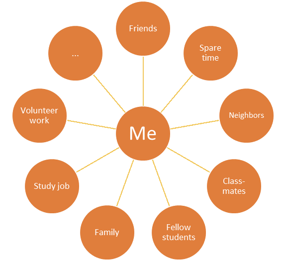 Find the method that suits you the best. Instead of making a mind-map you can make a chart, where you collect the different types of contacts and get an overview. The chart can be extended over time, when you think of more people you know – or get to know new people.